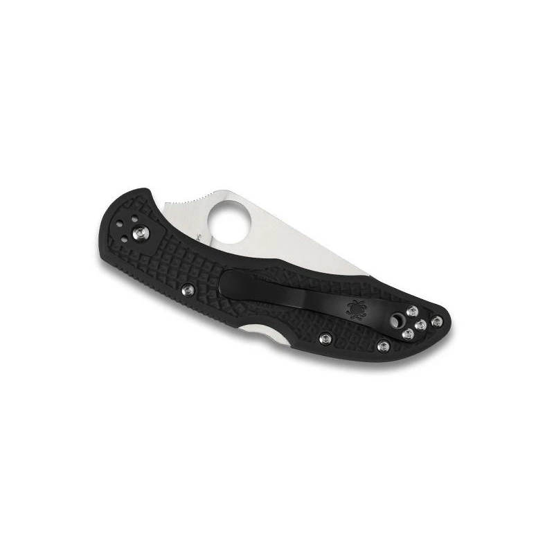 Ce couteau Spyderco Delica 4 C11FPBK est un modèle extrêmement transportable du fait qu’il ne mesure que 11cm de longueur en position fermée pour un poids total de 64 grammes. Un couteau pliant made in USA que vous pourrez emporter partout : il se glisse facilement dans une poche ou dans un sac à dos. Et pour que les déplacements soient toujours facilités, le Spyderco Delica 4 C11FPBK intègre aussi un clip au verso du manche. D’ailleurs, le manche noir assure une excellente robustesse grâce à sa conception en nylon et fibre de verre. De longueur 7,3cm, la lame à cran est fabriquée en acier inoxydable VG-10, d’ailleurs, elle est déjà marquée par le nom de l’acier ainsi que le logo Spyderco. Munie d’un profil plat, la lame est personnalisable par un petit texte, plusieurs polices d’écriture sont disponibles. Le couteau Spyderco Delica 4 personnalisé est un excellent moyen pour se faire plaisir ou pour les cadeaux.