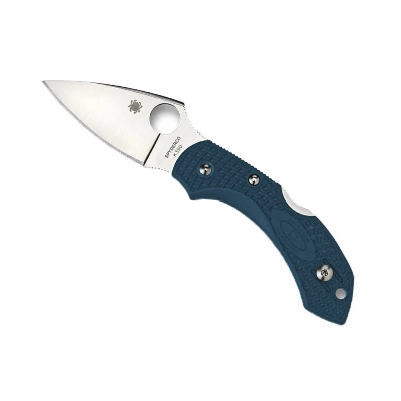 Ce couteau Spyderco Dragonfly 2, C28FP2K390, est ultra-léger, si bien qu’il ne pèse que 34 grammes une fois sur la balance. Il possède une lame de 58mm de long en acier K390 Bohler à cran, un acier de très haute qualité qui confère une résistance extrême à l’usure mais aussi la corrosion. Toujours ajourée, la courte lame est personnalisable par gravure, et embellie par le logo Spyderco.