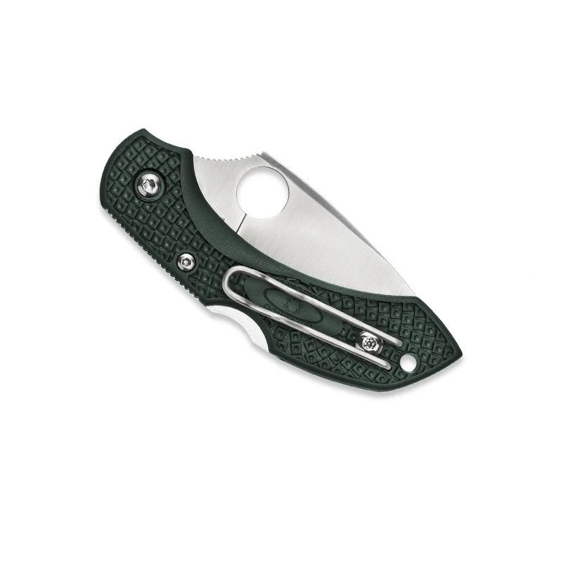 Le Spyderco Dragonfly 2 C28PGRE2 est un couteau pliant ultra-léger, avec un poids de seulement 34 grammes sur la balance. Il possède un manche en FRN vert British Racing, un matériau qui associe le nylon à la fibre de verre pour le style et la résistance. La forme ergonomique de la poignée assure une facilité de préhension, et ce en toutes circonstances. Le clip de poche situé au dos du manche garantit un transport sans encombre lors des déplacements et mouvements. Longueur du manche : 8cm, afin de pouvoir glisser le couteau dans une poche ou dans un sac sans le moindre problème. Le logo Spyderco est présent pour une touche décorative supplémentaire.