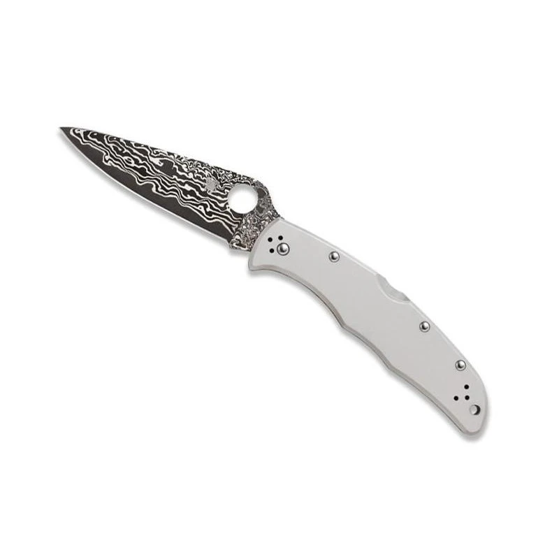 Le couteau Spyderco Endura 4 Titanium Damas référence C10TIPD est un modèle haut de gamme qui se distingue de part sa lame composée d’un noyau en acier VG-10 entouré par deux couches extérieures d’acier damas (2 x 15 couches). À noter que la lame mesure exactement 97mm de long et dispose toujours du trou caractéristique de la marque Américaine Spyderco, décoratif, il sert aussi à ouvrir la lame rapidement d’une seule main. Au niveau du manche, le couteau Spyderco Endura 4 Titanium Damas est fabriqué en titane, un matériau aussi élégant que résistant. Assurant une prise en main toujours optimale, le manche mesure aussi 12,5cm de long ce qui assure un transport toujours très facile de ce couteau pliant Spyderco made in USA. Et pour que le transport ne soit vraiment pas un problème, Spyderco a eu la bonne idée d’intégrer un clip de poche au dos du manche en titane, il est conçu en acier inox et est décoré par le logo Spyderco. Avec le Spyderco Endura 4 Titanium Damas, touchez la différence !