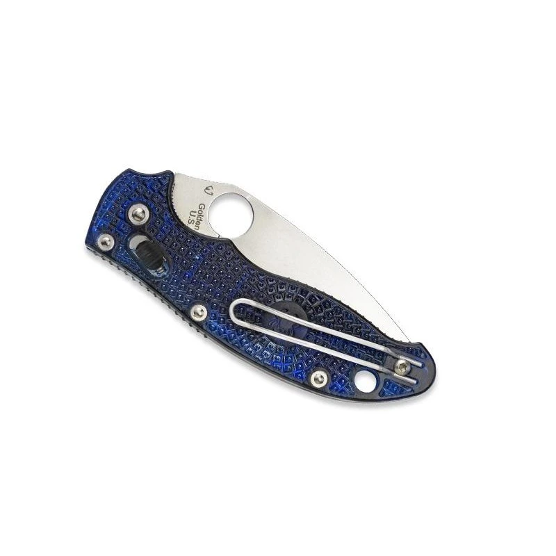 Le Spyderco Manix 2 C101PBL2 a remporté le prix du design le plus innovant du Blade magazine. Il est vrai qu’il possède un manche de 12cm de long plein d’originalité, puisque fabriqué en nylon et fibre de verre bleu translucide, pour un effet des plus stylés. La poignée en FRCP comprend un motif Spyderco moulé qui ne manquera pas de ravir les fans de la coutellerie Américaine. Le manche conserve une prise en main confortable et agréable, sa longueur de 120mm ainsi que son clip au dos permettent de pouvoir transporter le couteau avec la plus grande facilité, et ce, en toutes circonstances.