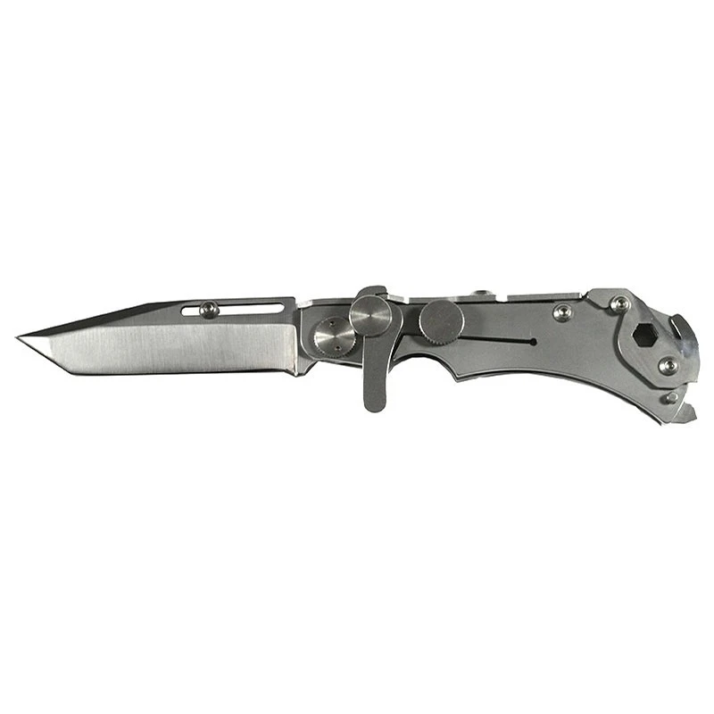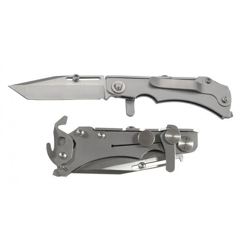 Le couteau pliant Wildsteer W Pocket lame lisse intègre aussi un manche conçu en acier coloris gris. Un manche solide qui se révèle extrêmement pratique du fait qu’il fait office de brise-vitres en bout, ainsi que de coupe-ceinture pour le découpage des sangles. Un couteau de poche Wildsteer qui se montre performant en toutes circonstances, même durant les situations urgentes. Il faut mentionner la présence d’un clip pour faciliter les déplacements/mouvements ainsi qu’un logement hexagonal permettant d’y ranger différents éléments (embout de tournevis, porte-embout …). À noter que Wildsteer est une coutellerie Française : le modèle W Pocket existe aussi en version lame dentée.