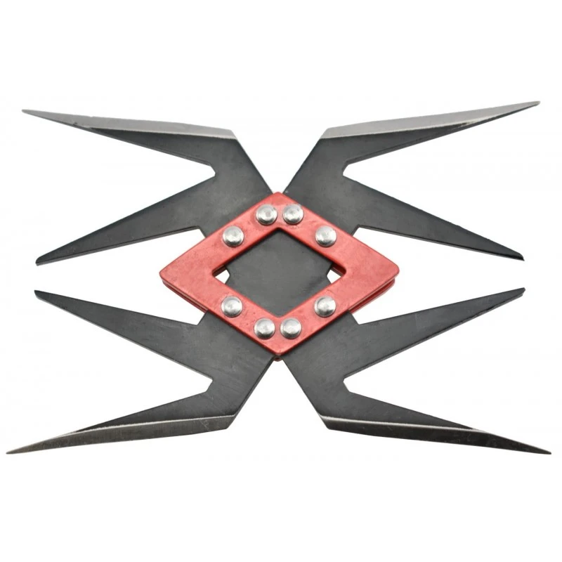 Cette shuriken au design très original est d’une grande efficacité ! Ressemblant étrangement à une araignée, l’étoile de lancer NS140 est munie de 8 branches mais simplement les 4 branches aux extrémités disposent d’un tranchant. L’arme est fabriquée en acier 420 ultra résistant à la rouille et aux impacts.