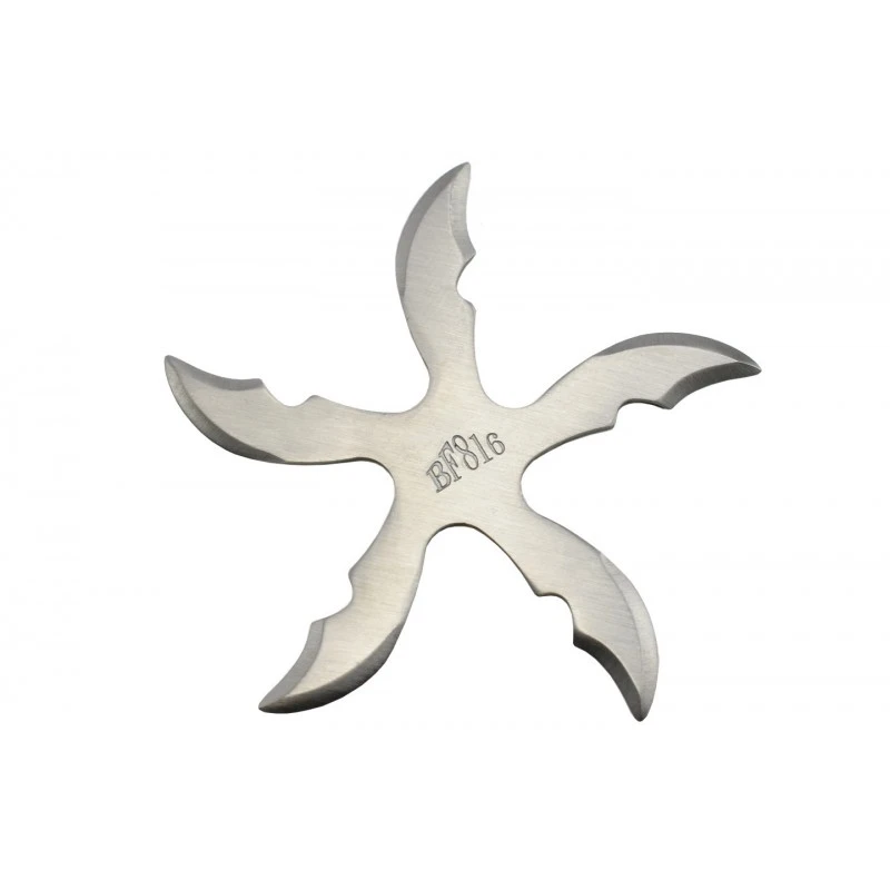 La shuriken NS146 de couleur argentée est une véritable étoile de ninja. En forme d’étoile de mer, elle est composée de 5 branches en acier inoxydable 420 réputé pour sa forte résistance à la corrosion.