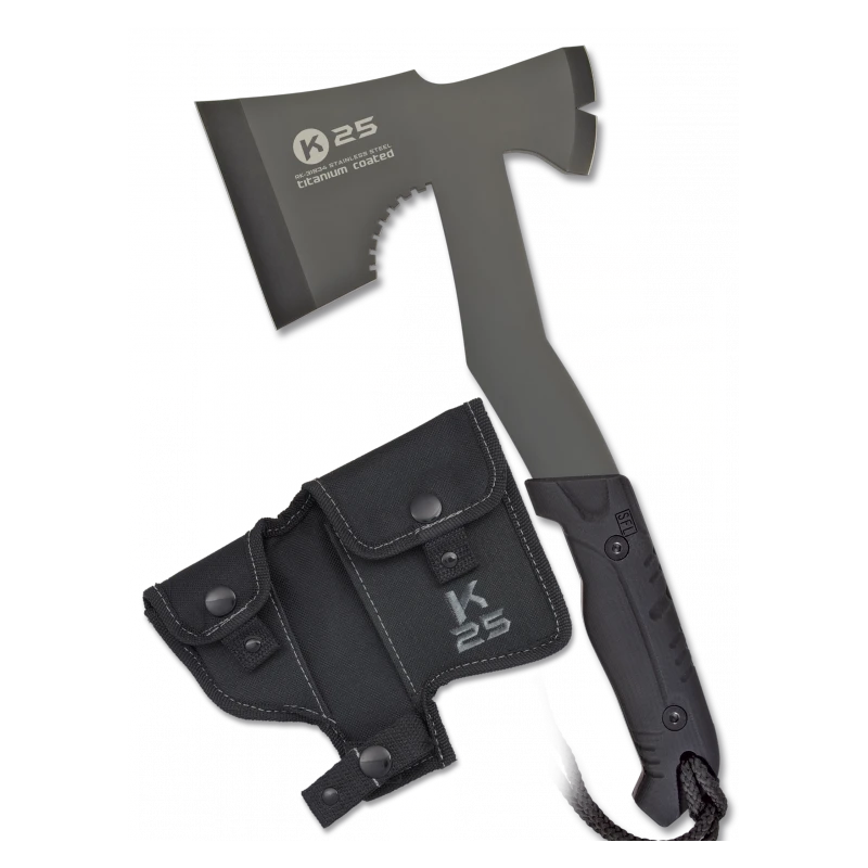 La hache Tactique K25 SFL est un équipement de grande qualité pour les adeptes du survivalisme, les randonneurs et les professionnels des forces armées.