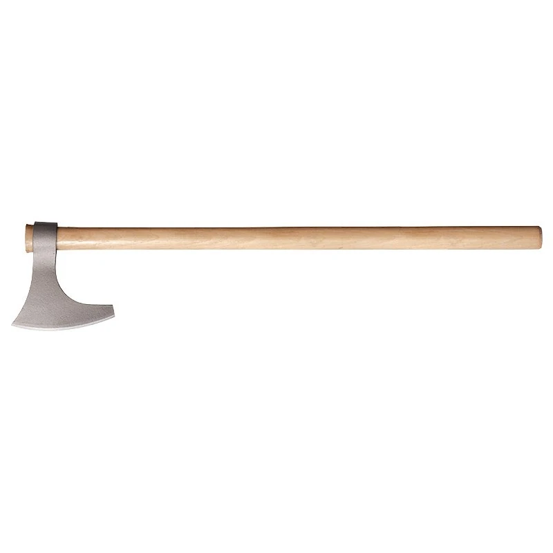 Le solide et long manche en hickory américain de 76.2 cm est emboîté dans le tête de hache en acier 1055 à haute teneur en carbone. Celle-ci dispose d’un design typique de la hache de viking, avec barbe crochue et corne de poussée vers le haut.