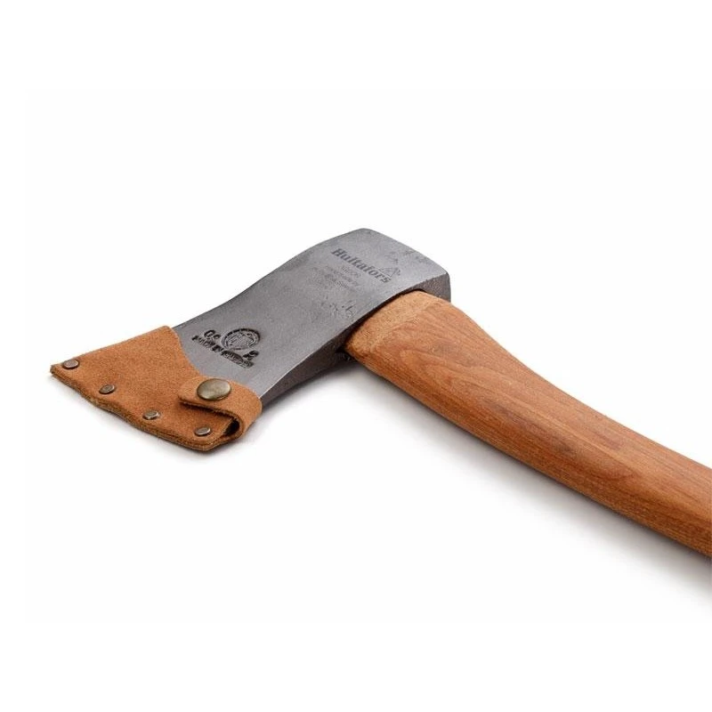 Pesant 900 grammes, la tête de la hachette pourra être facilement affûtée pour maintenir des performances de coupe optimales. Elle pourra être protégée via l’étui en cuir fourni.