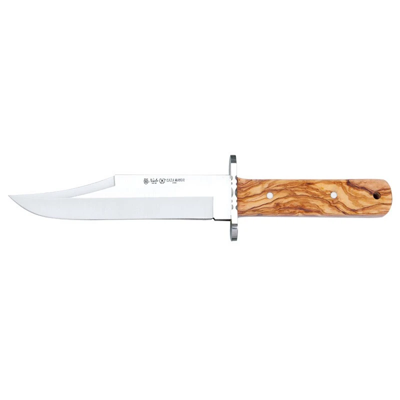 Le Caza Mayor (référence NI11043) par Nieto est un poignard de chasse extrêmement performant. Il faut dire qu’il possède une grande lame clip point de longueur 17cm en acier AN-58 assurant un tranchant de qualité en toutes circonstances. Une grande lame fixe avec garde sur laquelle on peut apercevoir les textes « Nieto » et « Caza Mayor » en référence au fabricant ainsi qu’au nom du poignard. À noter que la lame peut être personnalisée, ou plutôt gravée par les textes de votre choix, au niveau des deux faces, comme par exemple par le prénom du chasseur ou encore sa date de naissance. Ce poignard de chasse Nieto Caza Mayor dispose également d’un manche en bois olivier avec veinures apparentes pour la touche esthétique. Un joli manche de longueur 13cm qui est très ergonomique avec une prise en main des plus confortables. Grâce à l’étui en cuir fourni, il sera très facile de prendre soin de son poignard Nieto Caza Mayor au quotidien. Un véritable compagnon de chasse sur qui on peut compter !