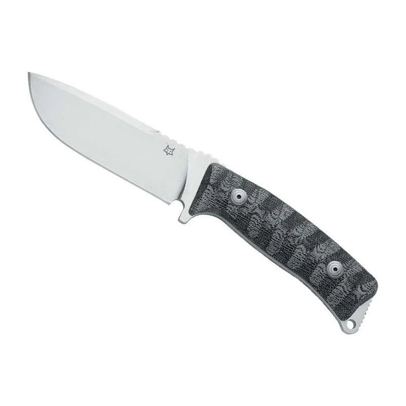 Le Pro Hunter de la coutellerie de Maniago « Fox Production » est le couteau de chasse par excellence. Avec ses 5mm d’épaisseur et sa construction en acier inoxydable N690Co, la lame fixe est extrêmement robuste et fiable à l’usage. Elle conviendra également parfaitement bien pour les situations de survie. Discrètement marquée par le logo Fox Production, à savoir la petite tête de renard, la lame mesure 11cm de long et peut être personnalisée par gravure en option.
