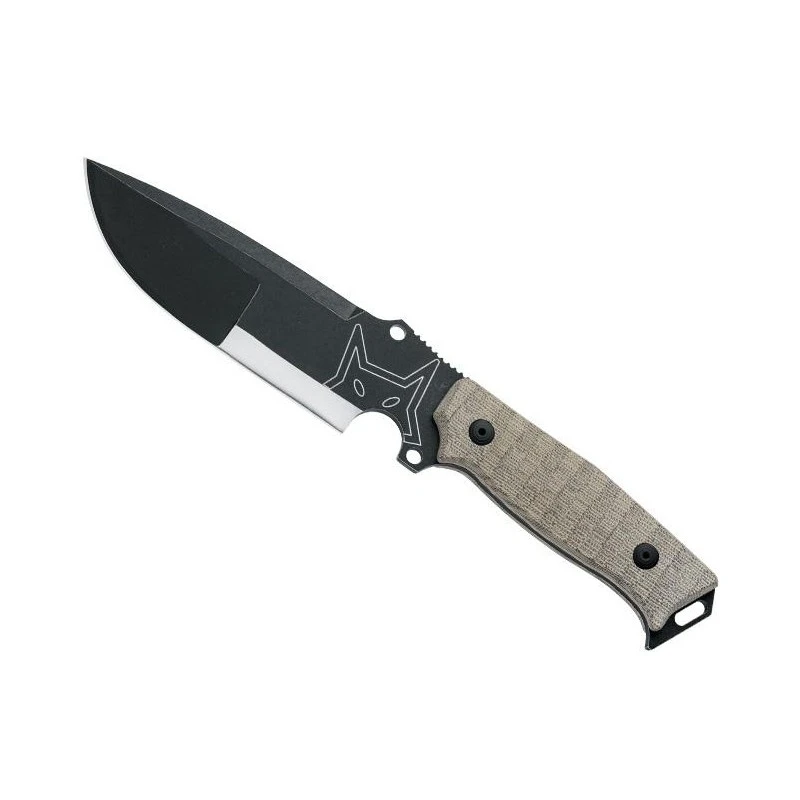 Le Sherpa, signé Fox Production, modèle FX.610, est un poignard qui possède une lame de 14cm de longueur, en acier D2 particulièrement résistant à la corrosion et à l’usure. On notera le fait qu’elle bénéficie d’une finition blackwash, d’où l’aspect noir. La grande lame est décorée par un motif tête de renard, à savoir l’emblème de la coutellerie Fox Production, en blanc pour un contraste optimisé, et ainsi une meilleure visibilité.