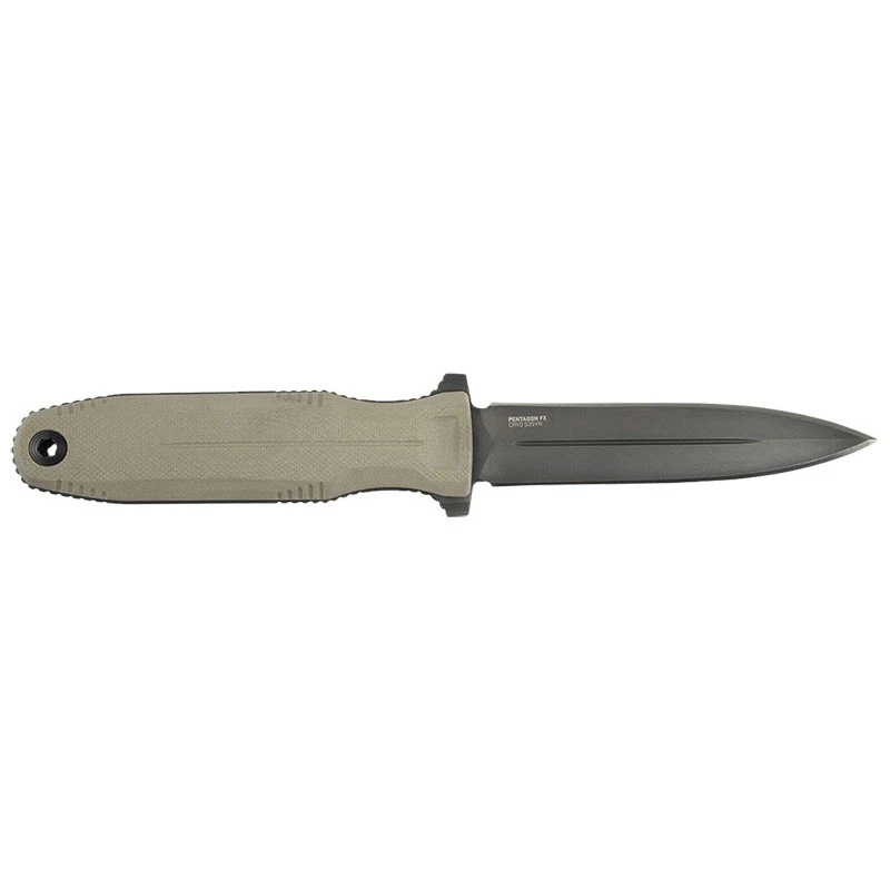LE SOG Pentagon FX est une arme polyvalente et performante que tout soldat pourra dissimuler discrètement dans son équipement. La version FDE est parfaitement adaptée au milieu militaire, reprenant la couleur désert utilisée comme camouflage par l’armée lors de missions. Ce poignard tactique est équipé d’un manche constitué de deux plaquettes en G10 qui assurent confort et adhérence. Celles-ci montées par un unique point t’attache se retirent facilement si vous voulez les remplacer, alléger ou changer le design du couteau fixe. Cette poignée ergonomique et robuste est également munie d’un trou pour lacet. La lame Spear Point avec revêtement noir du Pentagon FX mesure 102mm de long. Sa conception en acier CRYO CP S35VN et son double tranchant font de ce couteau SOG une arme ultra fiable et résistante aux conditions climatiques les plus rudes. Son transport sera facilité grâce au superbe étui FRN fourni par la marque américaine, un accessoire qui permet un port à la ceinture, sur un sac à dos ou à la cuisse.